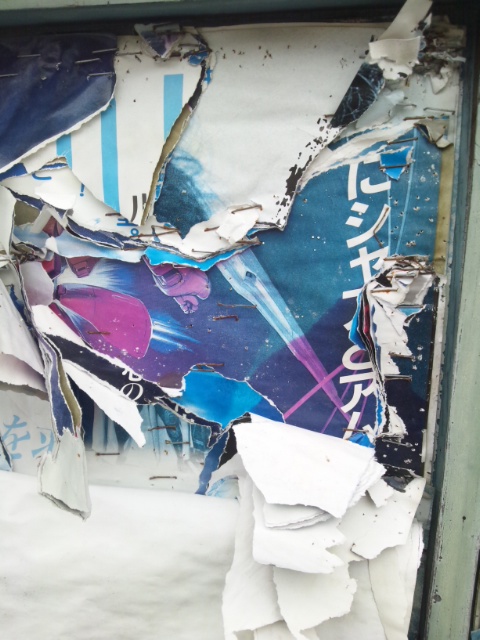 すっげえ昔の映画館の上映予定の掲示板なんですが、古い家の壁についたまんま放置されてまして。