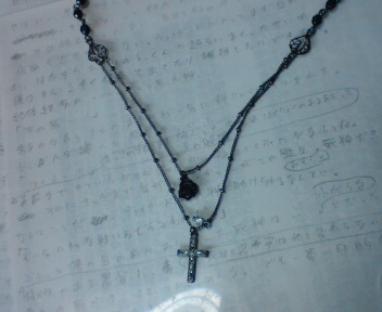この写メだとわかりにくいですか、十字架の上のチェーンについている黒いのは薔薇なんです。